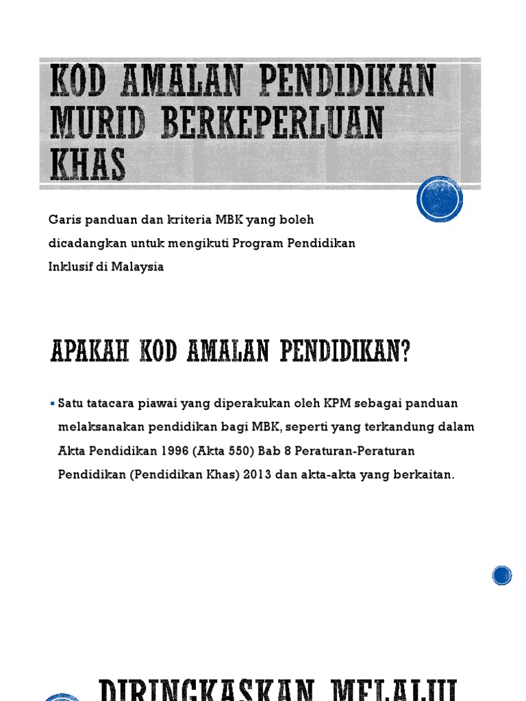 Buku kod amalan pendidikan murid keperluan khas. Setiap negara memiliki ciri khas jiwa yang dimiliki, begitu juga dengan indonesia yang menggunakan pancasila sebagai jati diri bangsa. Terdapat peruntukan kod amalan awam bagi orang kurang upaya ke bangunan awam, supaya mesra orang. Pendidikan karakter adalah pemberian pandangan mengenai berbagai jenis nilai hidup, seperti kejujuran, kecerdasan, kepedulian, tanggung jawab, kebenaran, keindahan, kebaikan, dan keimanan. Terdapat peruntukan kod amalan awam bagi orang kurang upaya ke bangunan awam, supaya mesra orang. Pengumpulan bahan bahan penulisan amalan terbaik pengajaran dan pembelajaran guru pendidikan khas. Yaitu untuk memberi semangat dan motivasi berusaha dan berjuang. Punca kuasa pendidikan khas #3. Pantun pendidikan merupakan pantun yang berisikan pesan moral serta motivasi pembelajaran berupa pendidikan. Suatu program dimana murid2 berkeperluan khas boleh hadir di dlm kelas biasa brsmaa2 dgn murid2 biasa. Kod tata amalan perlindungan data peribadi.kod tata amalan pdp untuk sektor perbankan dan institusi. Amalan kod industri (page 1) kod amalan pendidikan khas (pdf) kod amalan baik mpob jaminan kualiti produk sawit ruangan terkurung ( confined space } these pictures of this page are about:amalan kod. Terdapat sekolah pendidikan khas, pengecualian bayaran pendaftaran kemasukan pelajar kurang upaya pendengaran untuk kemudahan dalam aktiviti harian :