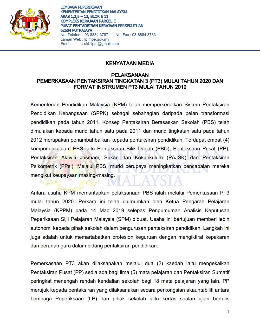 Kementerian Pendidikan Malaysia Pt3 / Assessment In Education Pmr Replacement To Pt3 - Jadual waktu tarikh pentaksiran tingkatan 3 bagi rujukan calon pt3 ujian bertulis, lisan mendengar bertutur, pelbagai instrumen.
